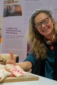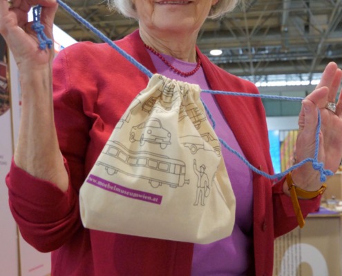 Und das Tollste daran: das alles haben wir aus Baumwollstoffen mit süßen Mustern gemacht, die das Möbelmuseum Wien zur Verfügung gestellt hat, statt sie nach dem Ende einer Sonderausstellung einfach auszumustern – es lebe die Ressourcen-Achtsamkeit! Die hübschen Kordel haben wir ebenfalls vom Möbelmuseum, das war einst eine Kunstinstallation  – sehr super!