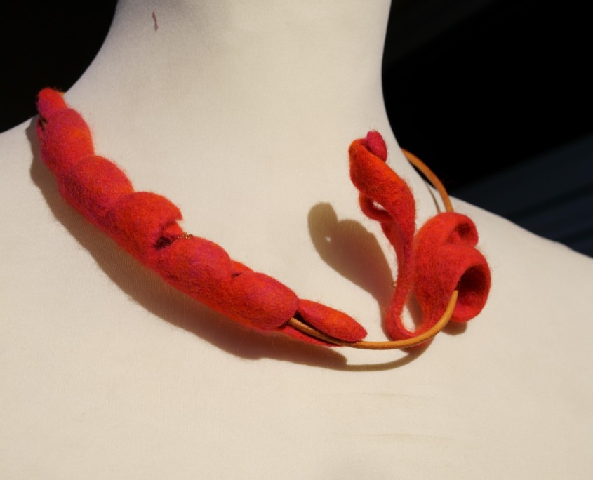 Flammendes Ensemble aus Ring und Halsschmuck - Merino und Goldstickerei