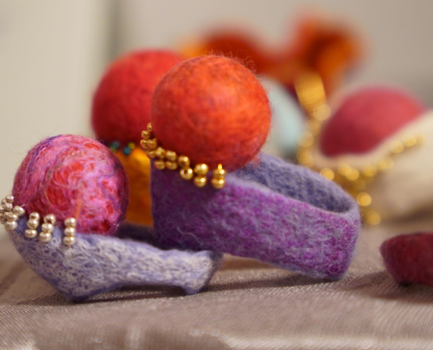 Federleichte Unikatringe aus Merinowolle und Sari-Seide