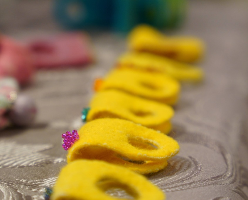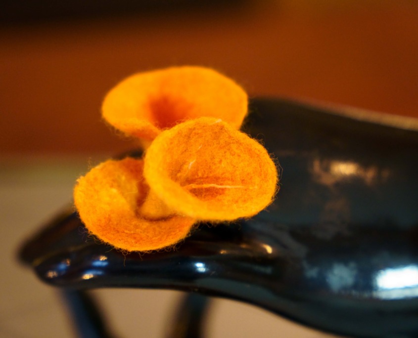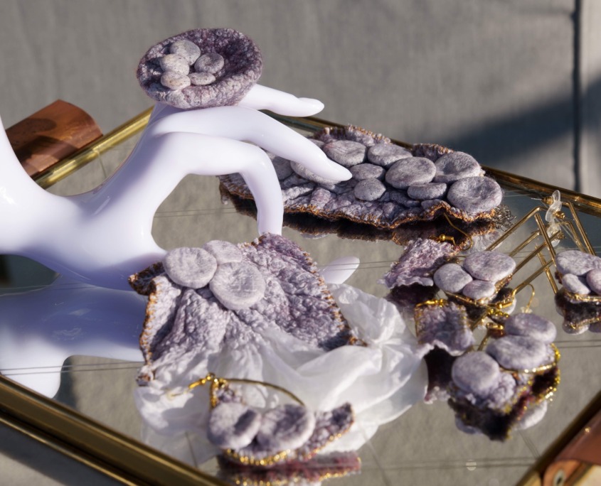 Zum Fressen gerne: Ring und Ohrringe aus Merino, Seide und Goldstickerei