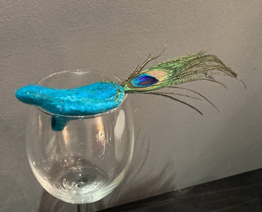 Unikatring aus Merinowolle, Seide und Pfauenfedern