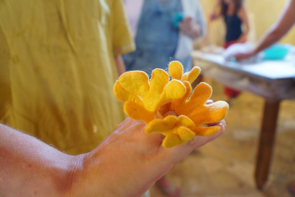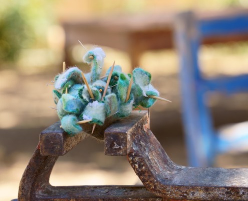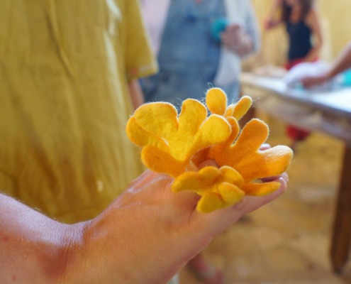 Wer die selbe Wolle möchte, mit der wir hier in der wundervollen Umgebung der Sommerakademie Zakynthos gearbeitet haben: Sie läßt sich sehr einfach über die Online-Shops von Wollknoll und Filzrausch bestellen. Noch jedes Paket ist bisher sicher verpackt und mit dem richtigen Inhalt bei mir angekommen 😊. Um ein paar Euro lassen sich auch Farbkarten bestellen, dann habt ihr echte Muster, aus denen ihr gustieren könnt.
