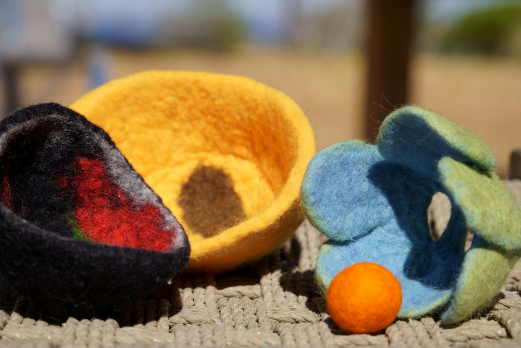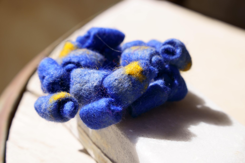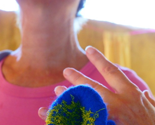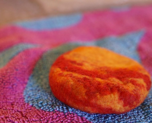 Was ihr für den Anfang braucht, wißt ihr nach unserer gemeinsamen Woche ja aus erster Hand. Eigentlich reichen Wolle, Wasser, Olivenseife und ein bißchen Noppenfolie.